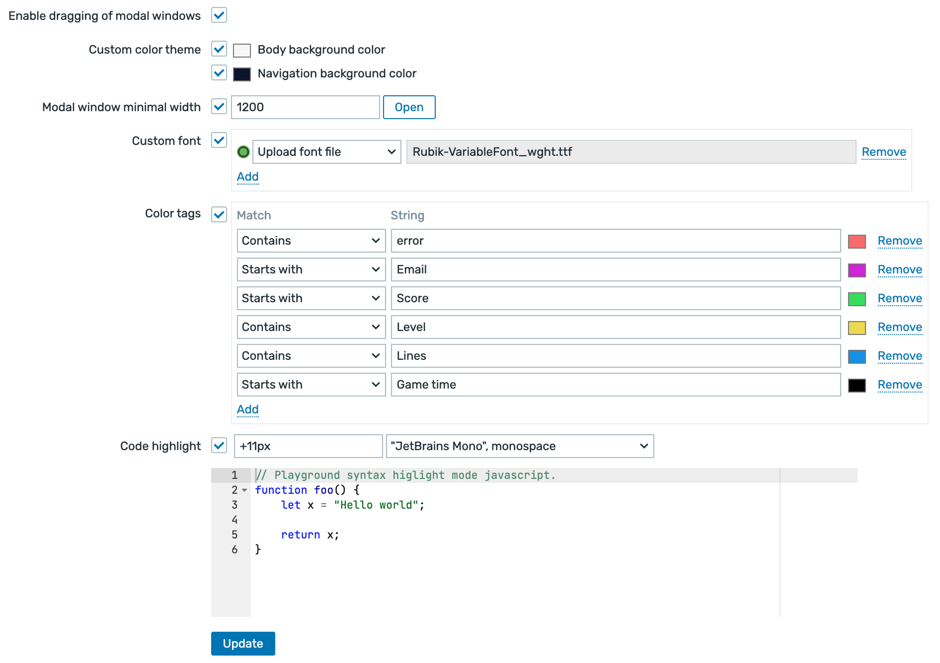Change Zabbix frontend menu and background color, highlight tags, choose a style for your JavaScript code, and drag and move modal windows – all with our uxMAX module.