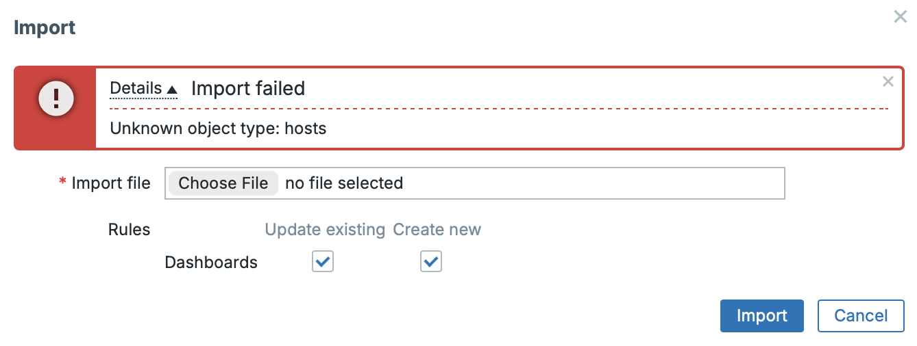 During import, individual objects are not matched by ID, but by name. In our example, the host was renamed from “Zabbix server” to “Zabbix server RENAMED”, and the system was then unable to find it. The fix is straightforward: you can adjust the mapping directly in the UI during import, or by editing the exported file.