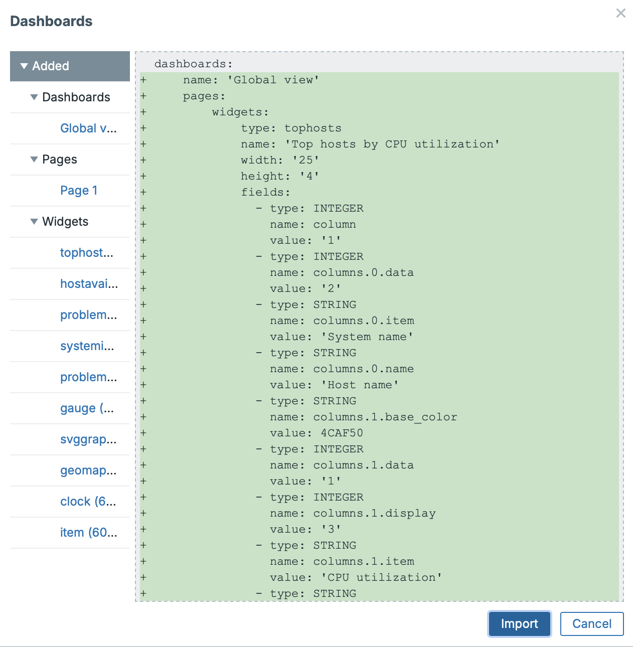 Dashboard export and import have been added