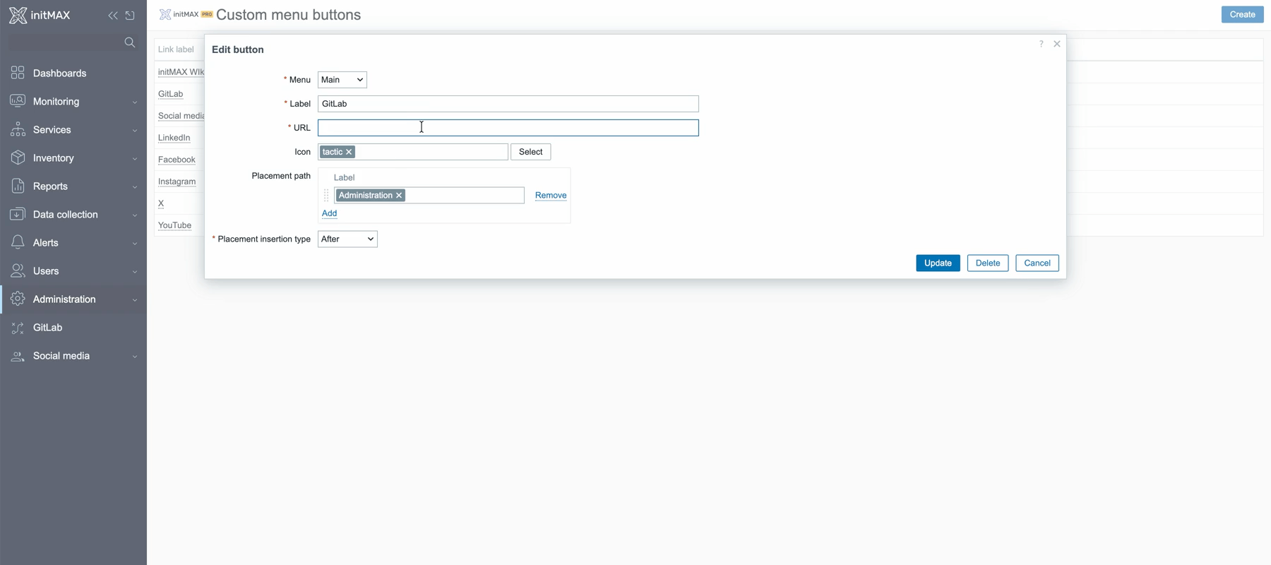 Users can place these buttons almost anywhere in the Zabbix menu. Each button can be configured with any URL, allowing direct access to needed resources.