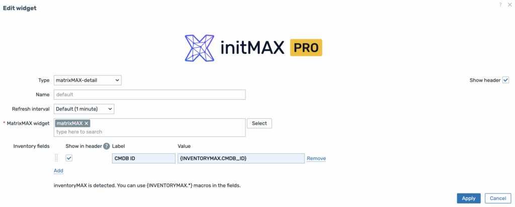 The matrixMAX-detail will allow you to only choose the matrixMAX widget and up to three inventory fields based on their macros.